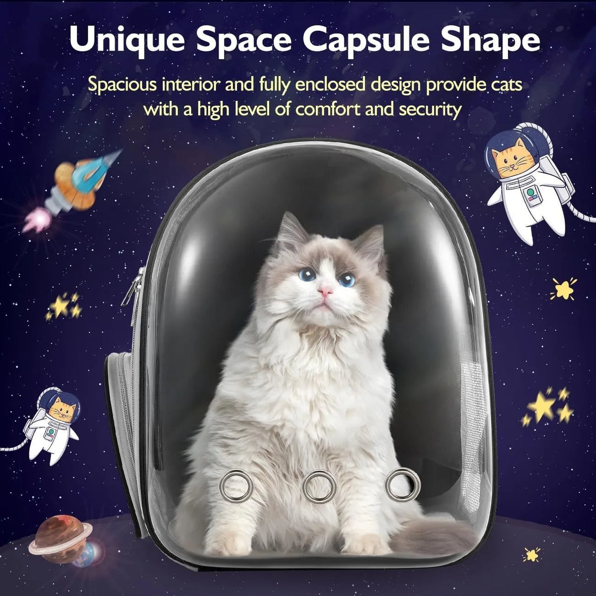 Transparent bubble window offers a panoramic view to reduce pet anxiety